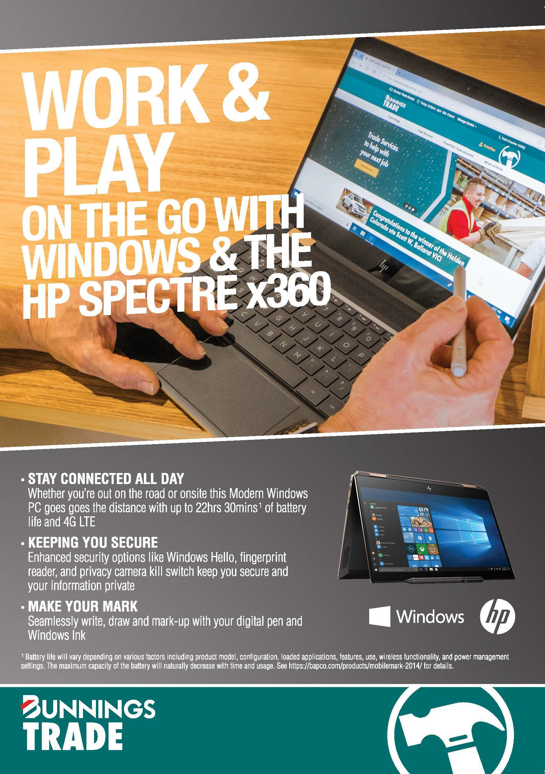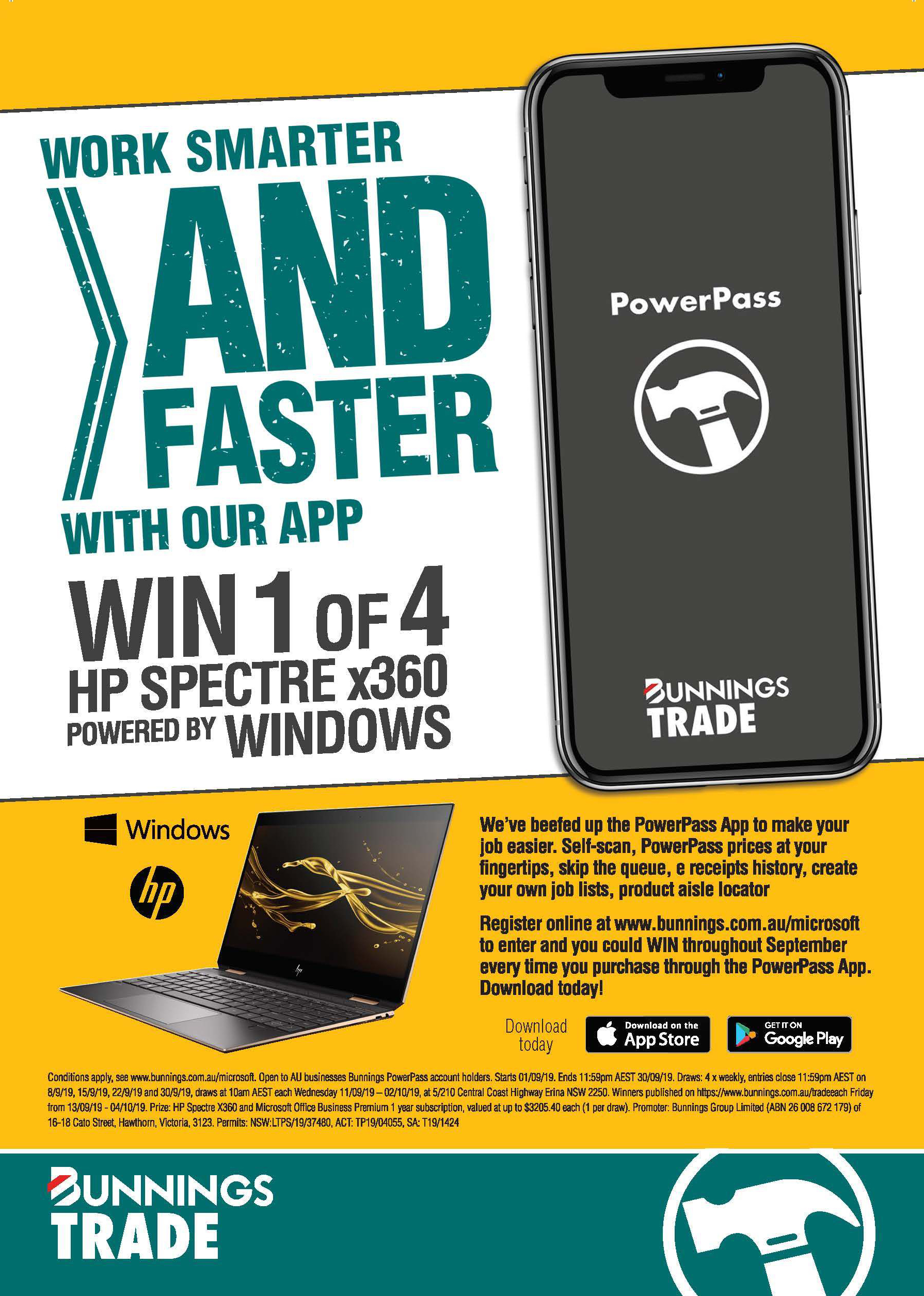 With every purchase and a registration online to enter trade customers received a chance to WIN 1 of 4 HP SPECTRE x360 powered by WINDOWS laptops. One Microsoft HP Windows Prize was drawn each week over 4 weeks, to drive customers to use their Bunnings PowerPass App for purchasing.